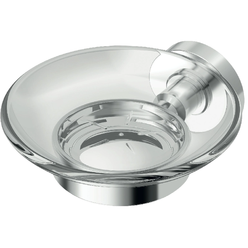 Ova posuda za sapun kombinira čvrstoću metalnog nosača s elegancijom staklenog umetka. Dizajnirana s okruglom rozetnom, savršeno se uklapa u moderni dekor kupatila. Praktična i estetski privlačna, ova posuda za sapun donosi sofisticiranost i funkcionalnost u vaš prostor.