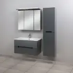 Tijana ogledalo sa ormarićem i rasvetom je samostojeći kupaonski ormarić s dvoja vrata, četiri ladice i dovoljno prostora za pohranu u unutrašnjosti. Izuzetno je praktičan za organiziranje svega što bi inače bilo razbacano po cijeloj kupaonici.
